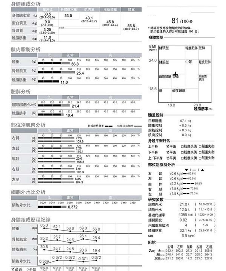 我成日覺得自己身型唔夠fit,前一輪做咗智能體測,幫我分析咗我嘅體型、體態,出咗份準確嘅圖表解讀報告俾我睇,先知自己嘅大腿同埋肚腩肥,跟住佢哋又俾咗份運動處方建議,叫我做針對性嘅運動,宜家我覺得咗靚仔咗好多。真系推薦大家喺減肥,前先去做一次智能體測。再去健身室練大隻,咁樣做好有效架。
